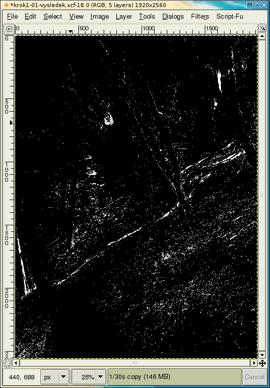 Já si myslím, že to smysl má, a tak jsem zvolil Treshold 0-40 a Gaussian Blur 50. Jestliže nepracujete se mnou a jen si čtete článek, můžete si výsledek práce stáhnout (49MB, 9MB) a prohlédnout si ho.